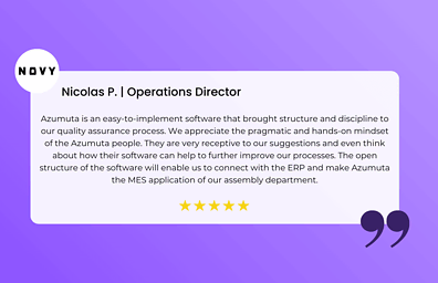 - With Azumuta’s Quality Management Module, you are assured of the integrity of your data, as well as its traceability. Our automatic data collection, digital signatures and verification tests ensure that the entire processing workflow is documented and verified. You get clear confirmation reports on product quality, authenticity and traceability at any time!