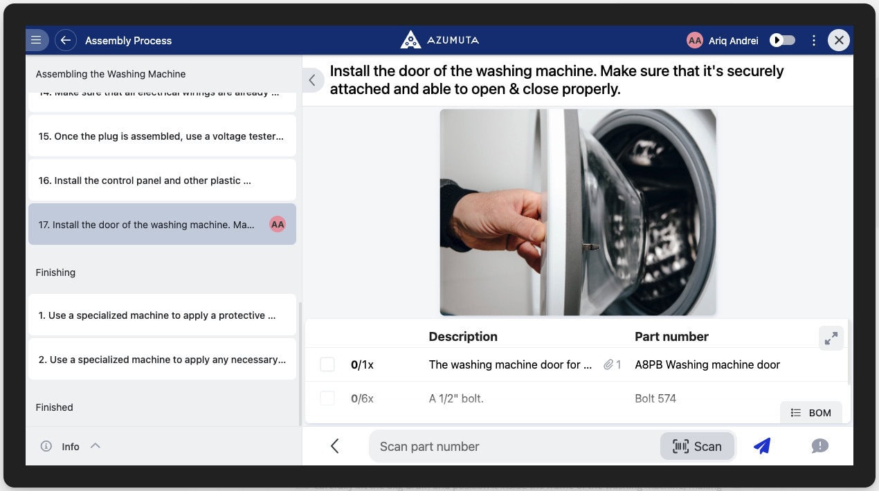 Now, whenever an operator has completed a parts check (either by scanning the correct barcodes of all parts or by manually typing in the correct part number of all parts) within the parts check, the operator’s screen will be automatically redirected to the next instruction step.