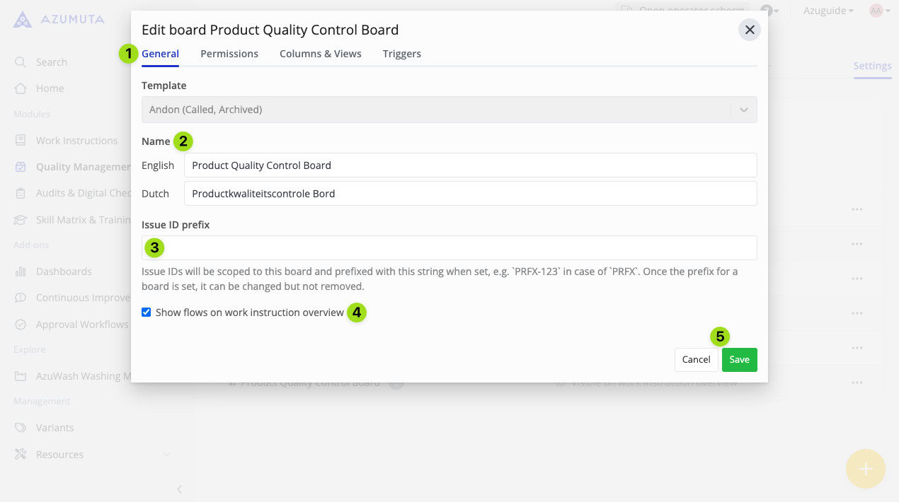 The General tab is the first tab that will appear whenever you open the andon board editor. Here’s what you can edit on this tab: