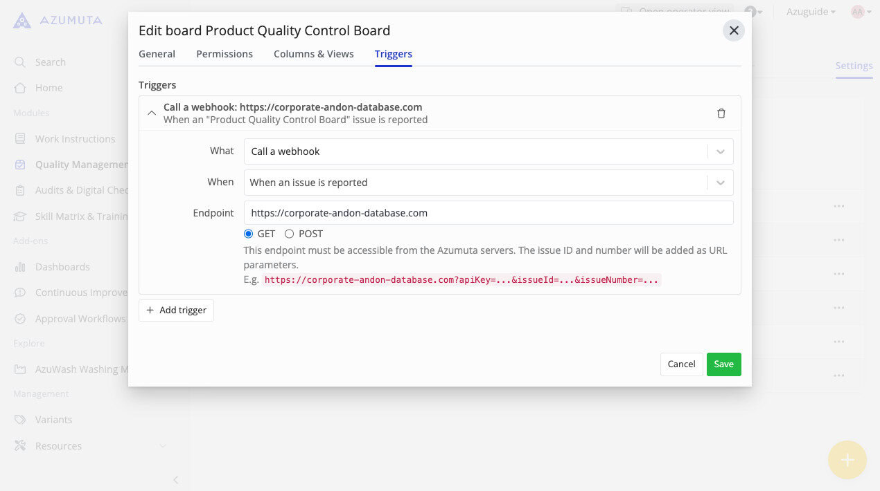 A trigger is a tool that is used to automate a certain process based on an event that takes place within an Azumuta workspace. With triggers, you can automate various tedious tasks, saving both you and your employees valuable time.