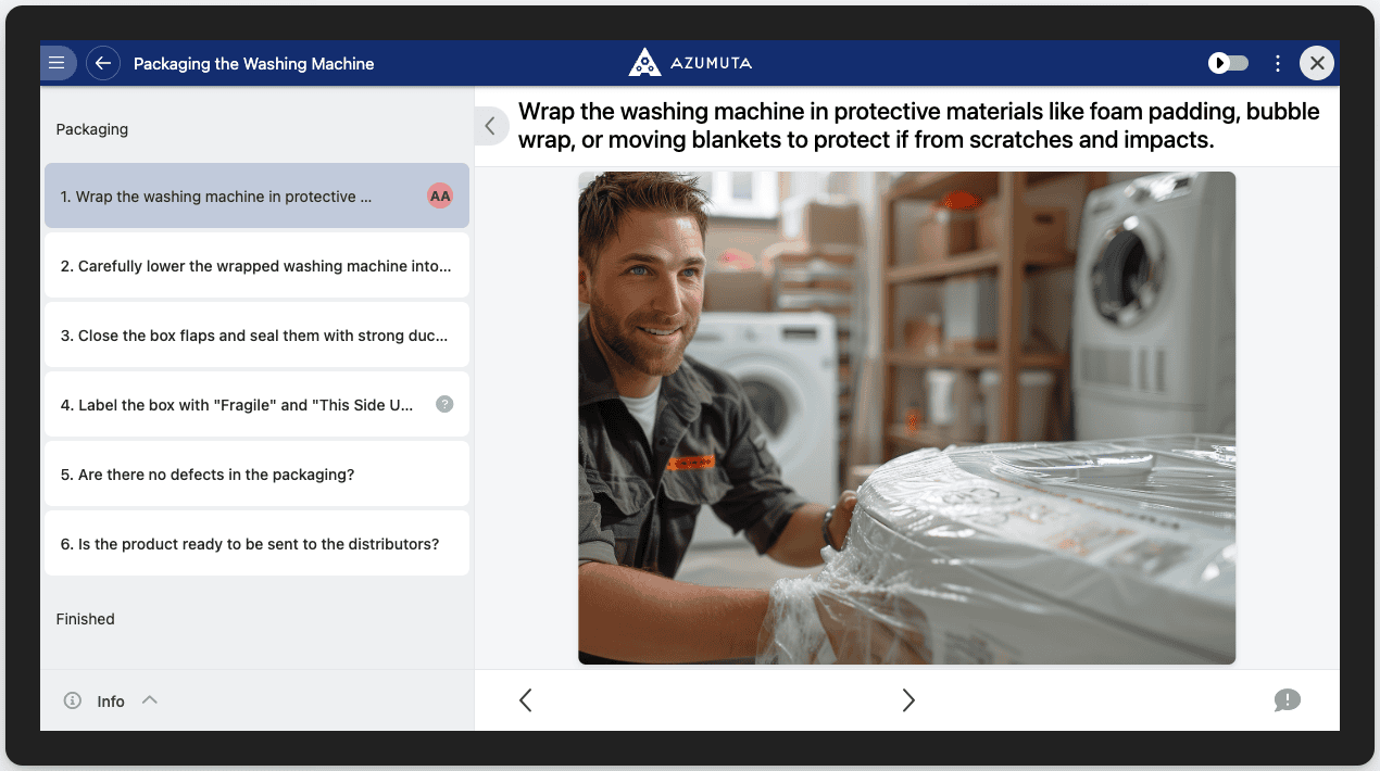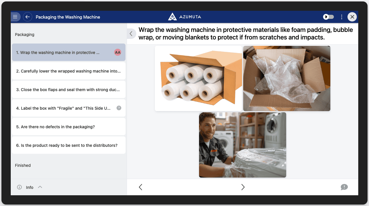 This is how a work instruction step with multiple images will appear on the operator’s screen: