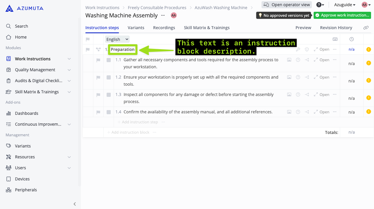 - Navigate to any work instruction.