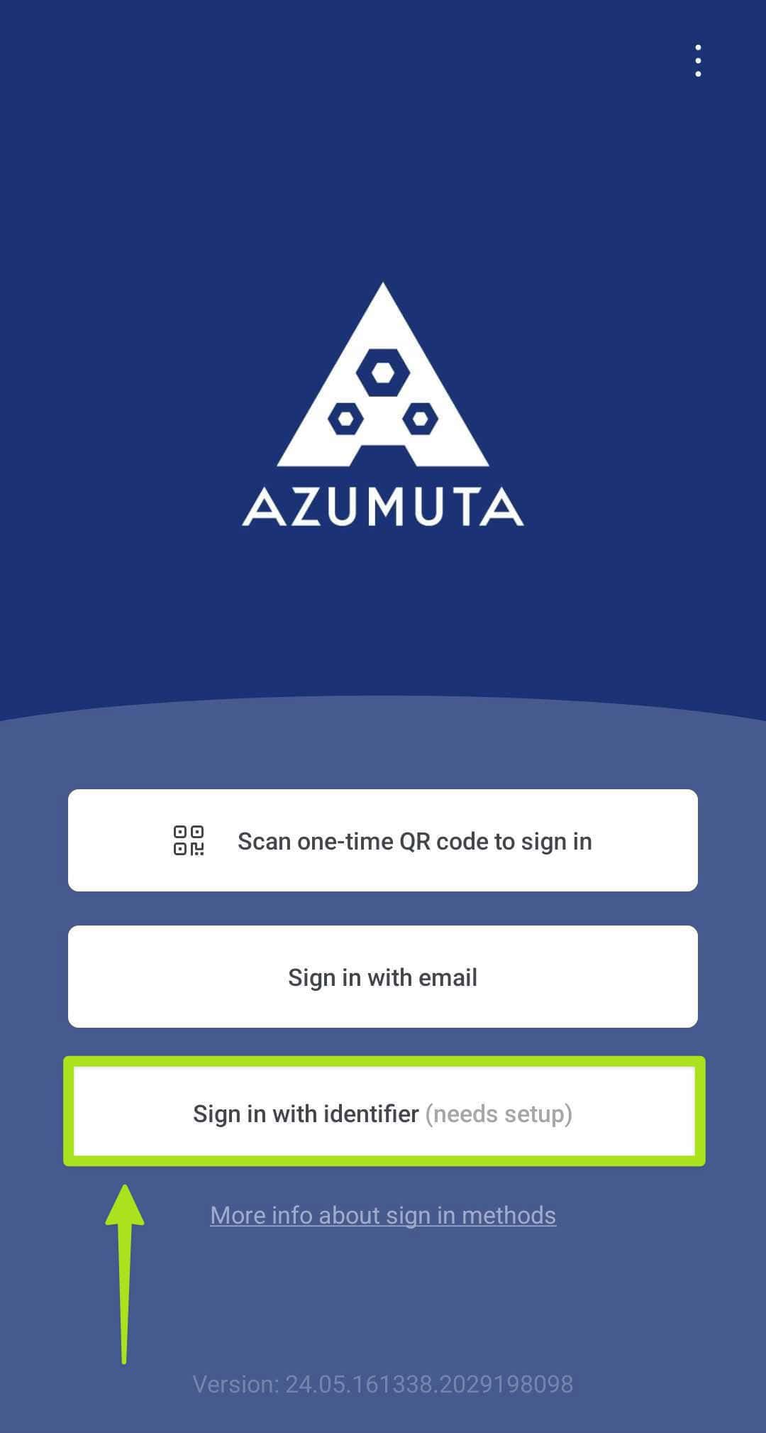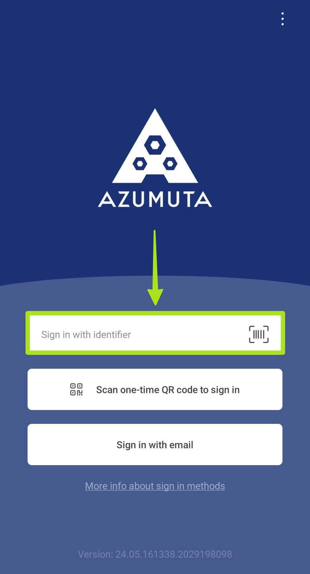 Another possible method to log in to an Azumuta workspace is by using an identifier. An identifier is a personal code that is commonly used to authenticate an Azumuta user, allowing them to log in to an Azumuta workspace.
