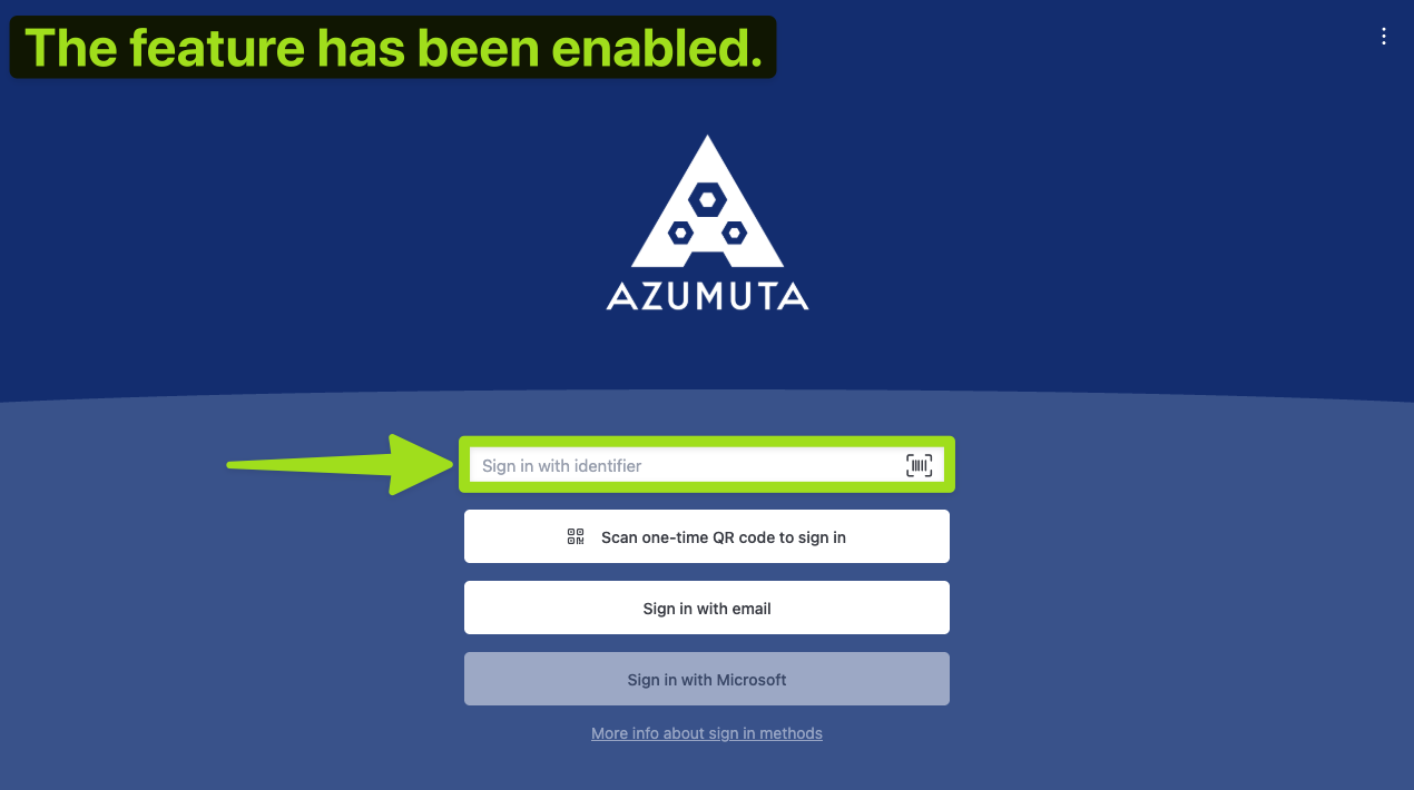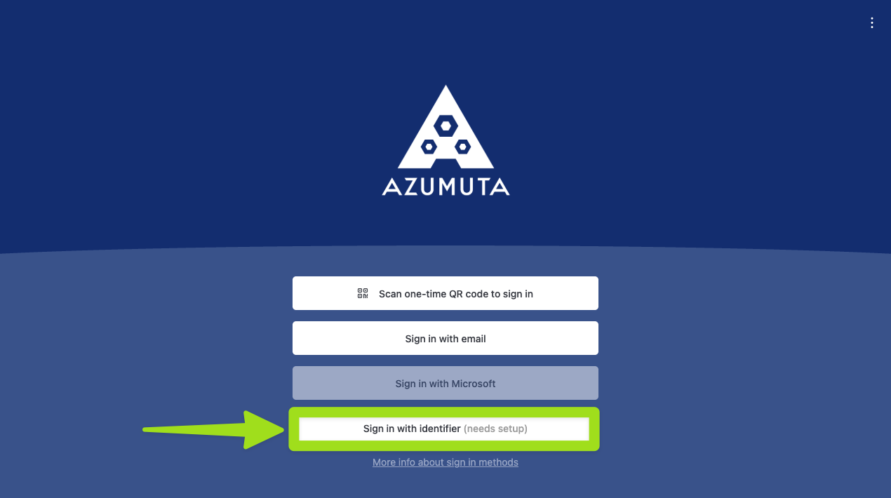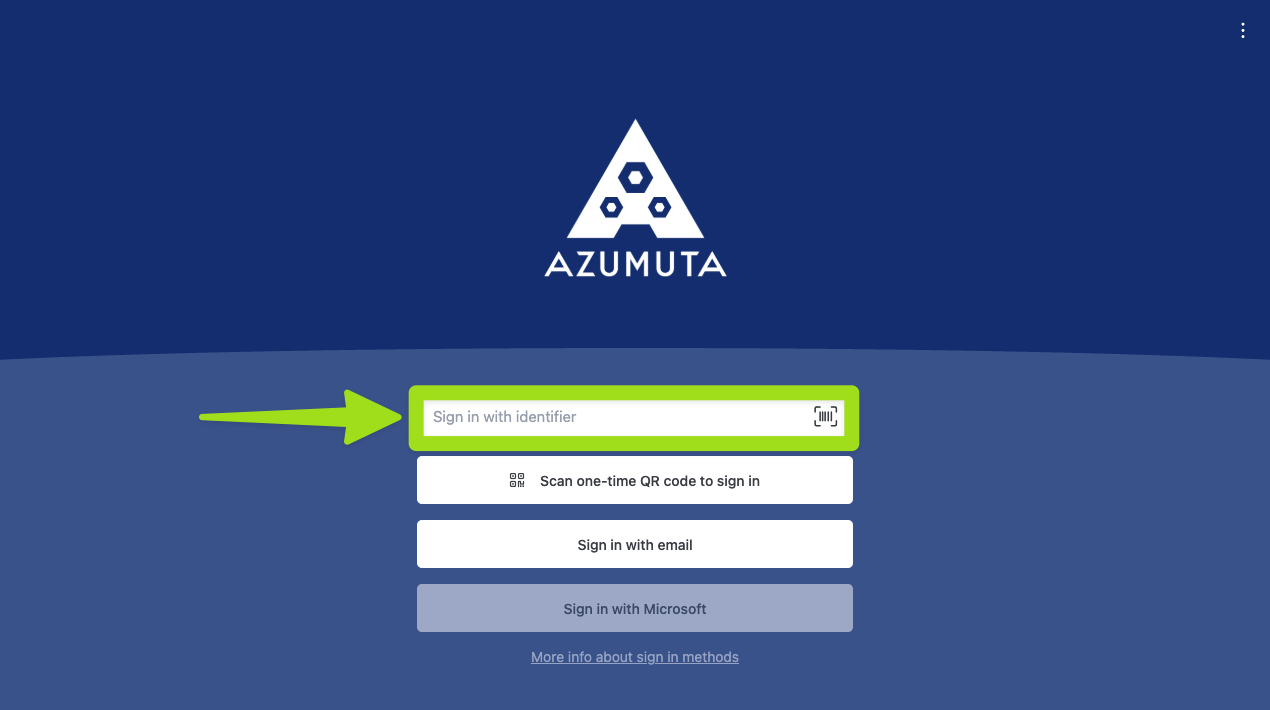 Another possible method to log in to an Azumuta workspace is by using an identifier. An identifier is a personal code that is commonly used to authenticate an Azumuta user, allowing them to log in to an Azumuta workspace.