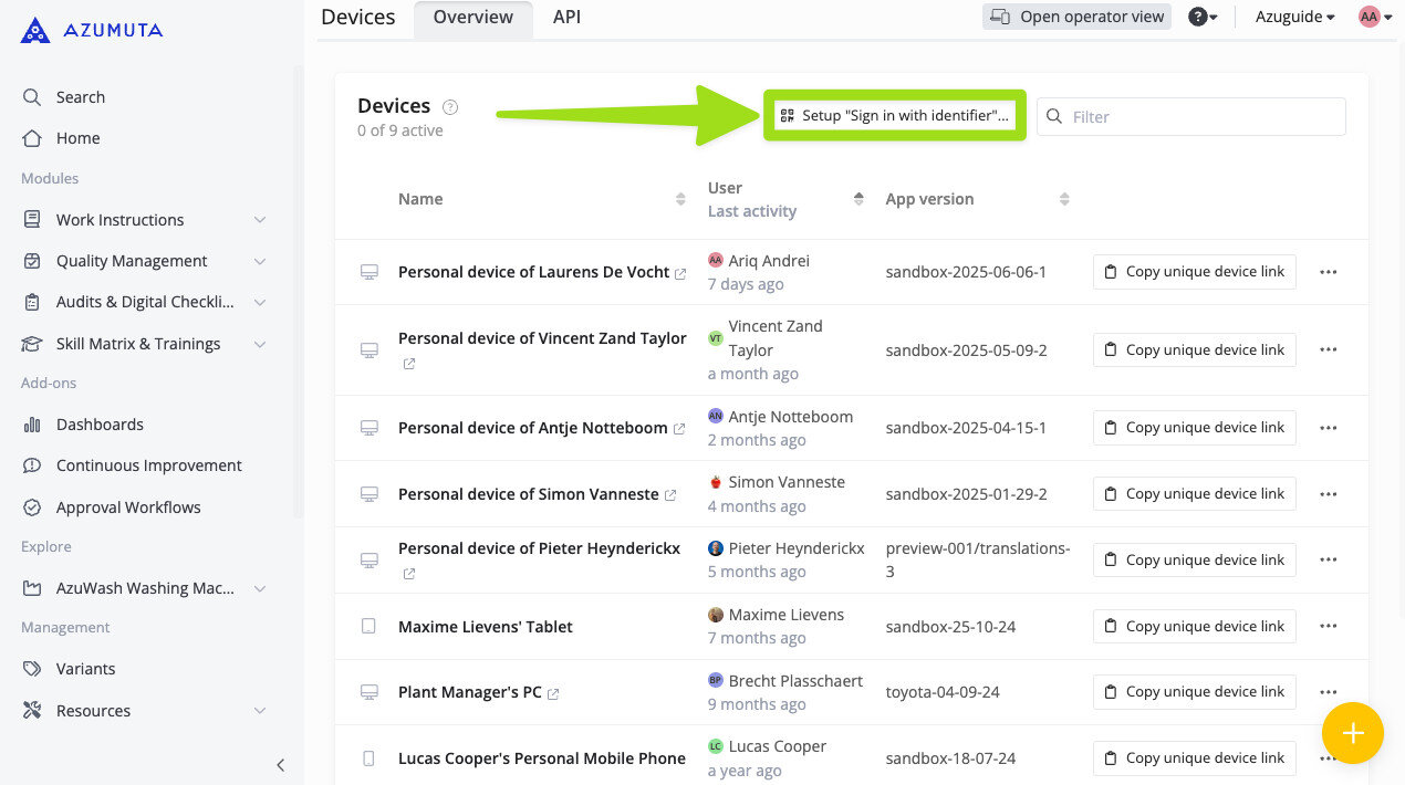 The first phase is to add a new device to your workspace. This is the device that will have its “Sign in with identifier” feature enabled and will be used by your operators. Here’s how to add it: