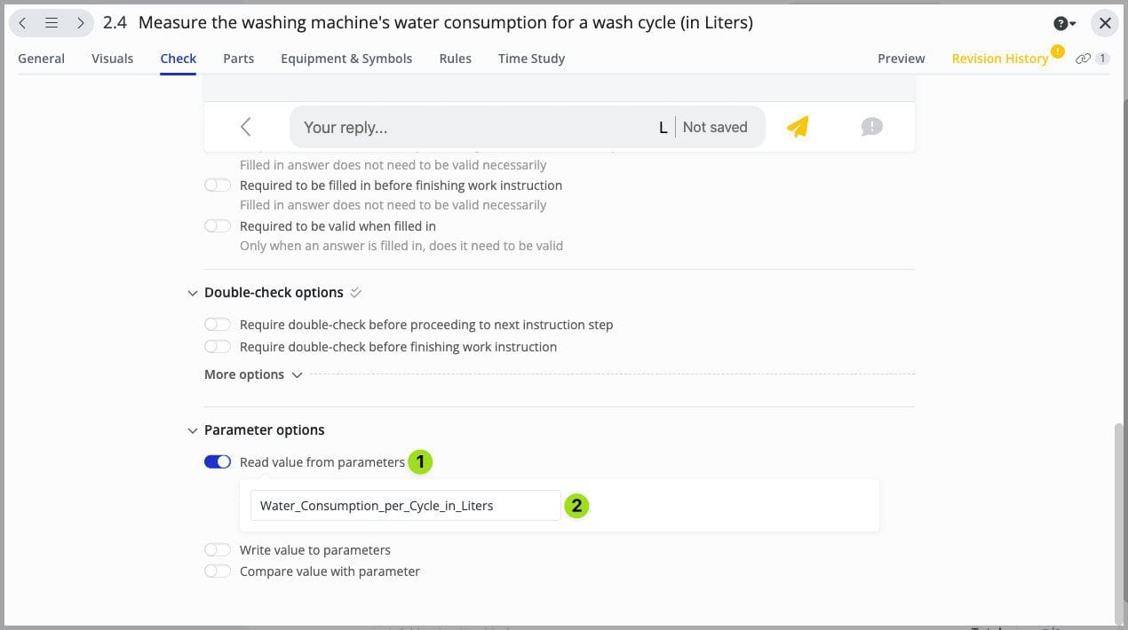 Another thing that you can do is to ask an operator to input a parameter value from their findings on the shop floor. In this case, the admin doesn’t have any pre-determined parameter value, and it’s the operator’s task to find the parameter value and inform the admin of it.