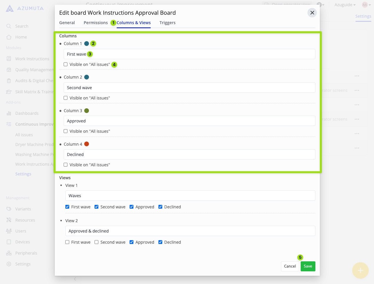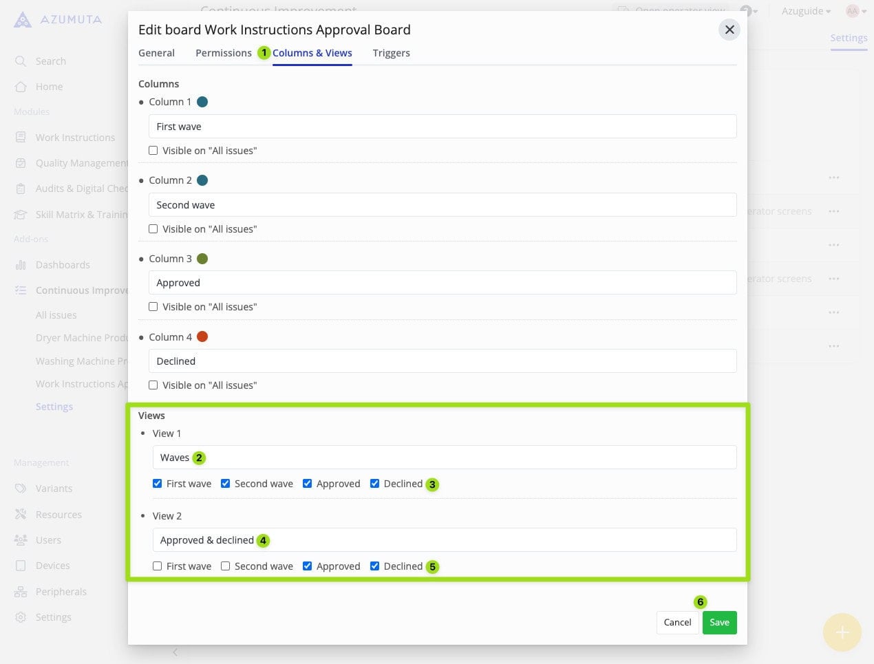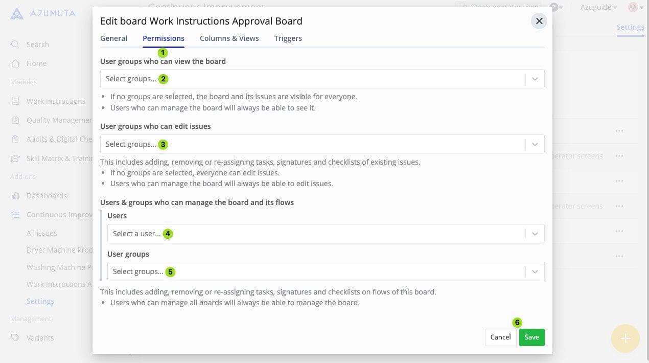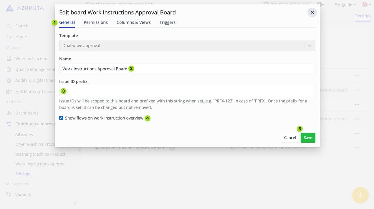 - Select whether the approval flows that fall under this approval board are to be visible on the work instruction overview.