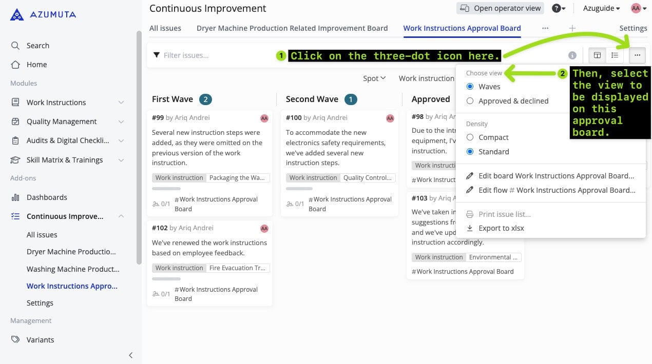 After you’ve configured the Views Settings, you can choose the view that you would like to view on your approval board by following the steps below: