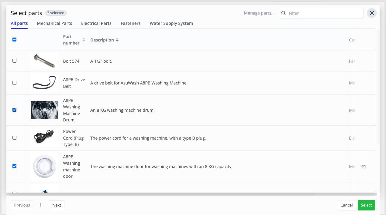 New Interface for Part Selection