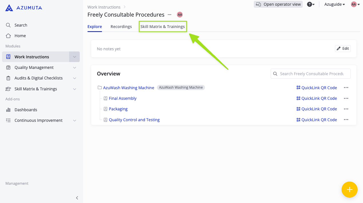 To find a skill matrix in any of the locations above, simply click on the Skill Matrix & Trainings tab at the top of your screen.