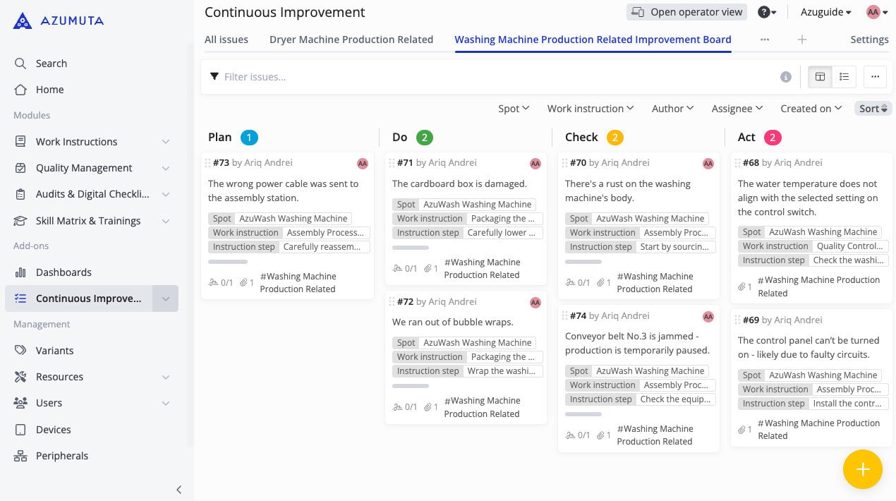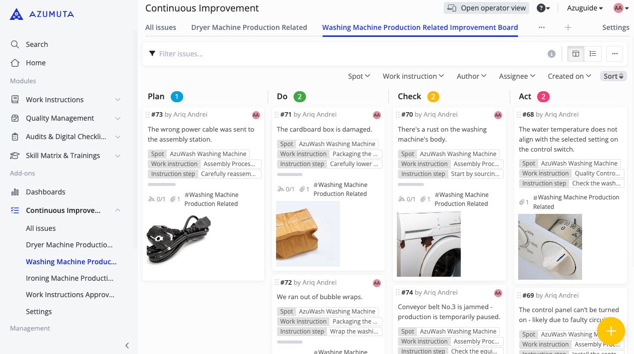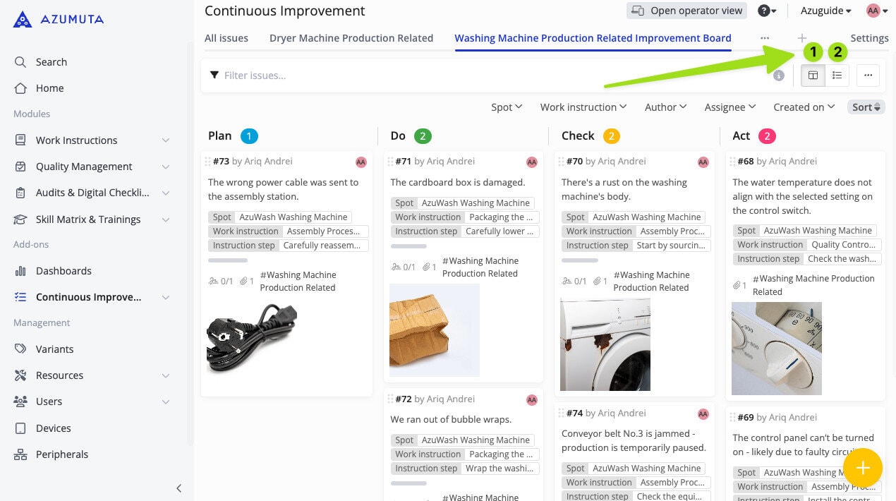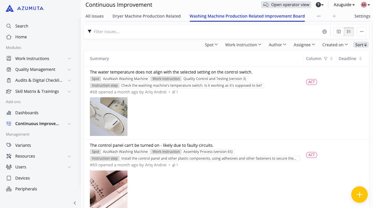 - Compact interface: No media files are displayed, making each issue appear more compact. This allows you to see more issues on your screen without scrolling.
