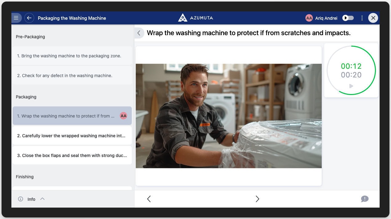 To ensure consistency throughout your work instructions, you can use our timer feature on each instruction step.