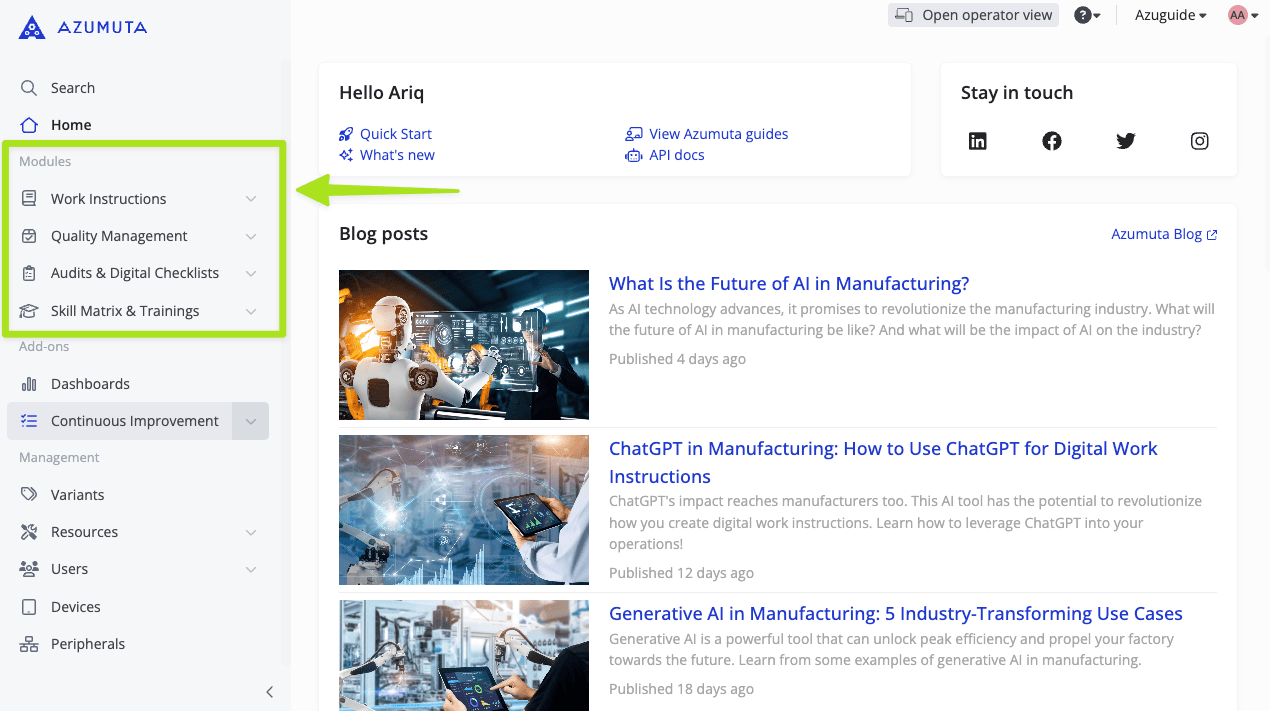 Therefore, to use Azumuta to the fullest, we recommend you use other modules beyond just Work Instructions. Contact us at maurice.belpaire@azumuta.com to know more about our modules.